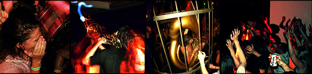 | For two weeks I'll be joining Providence, Rhode Island's renegade marching band: THE WHAT CHEER? BRIGADE on their southern US tour. Acting as part driver, hat-man, bottler, merchandiser, documenter, and deer hunter dancer. I'll be following the 15+ band members tearing up the streets in Chattanooga, Atlanta, Pensacola, New Orleans, Little Rock, and ending at Perry Farrell's fabled Lollapalooza. It'll be a great opportunity to experience new venues and landscapes but the biggest challange will be attempting to capture the energy and ferocity this band produces in it's wake. |